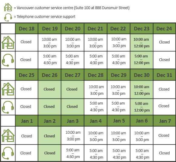 While online banking will be available, our holiday hours will be as follows (Pacific Time).